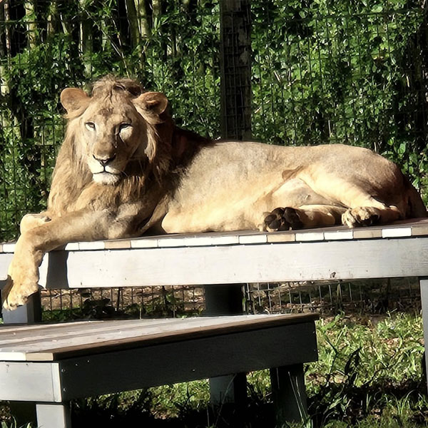 Snarf is a 2½-year-old lion who lives at EARS – Endangered Animal Rescue Sanctuary. While smaller than some of the lions who came before him, Snarf has a charm all his own — full of energy, curiosity, and youthful spirit.